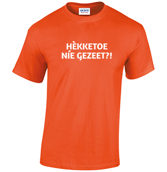 Grappig t-shirt met welbekende Tilburgse tekst “Hekketoe niet gezeet!” om bijvoorbeeld te dragen op een feestje of gewoon casual!